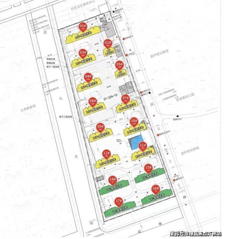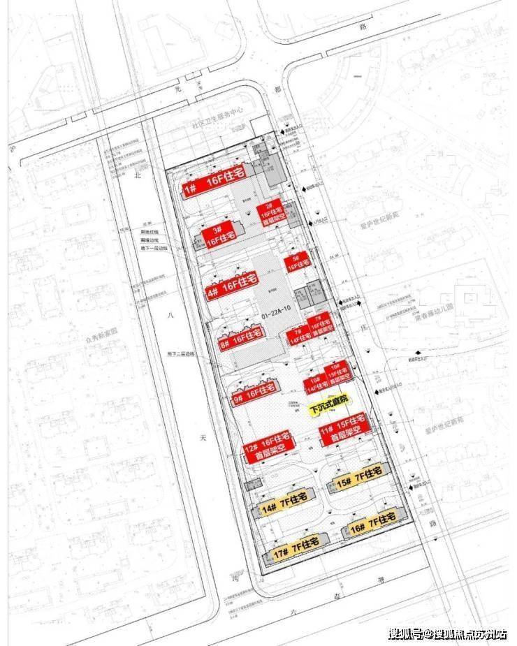 根据项目规划设计方案,项目拟建11幢14-16F高层住宅、4幢7F多层住宅以及若干社区配套用房,共计规划约752套可售住宅;小区人车分流,规划有下沉式庭院、地下会所,2#、7#、10#、11#、12#设置有架空层,打造泛会所空间。