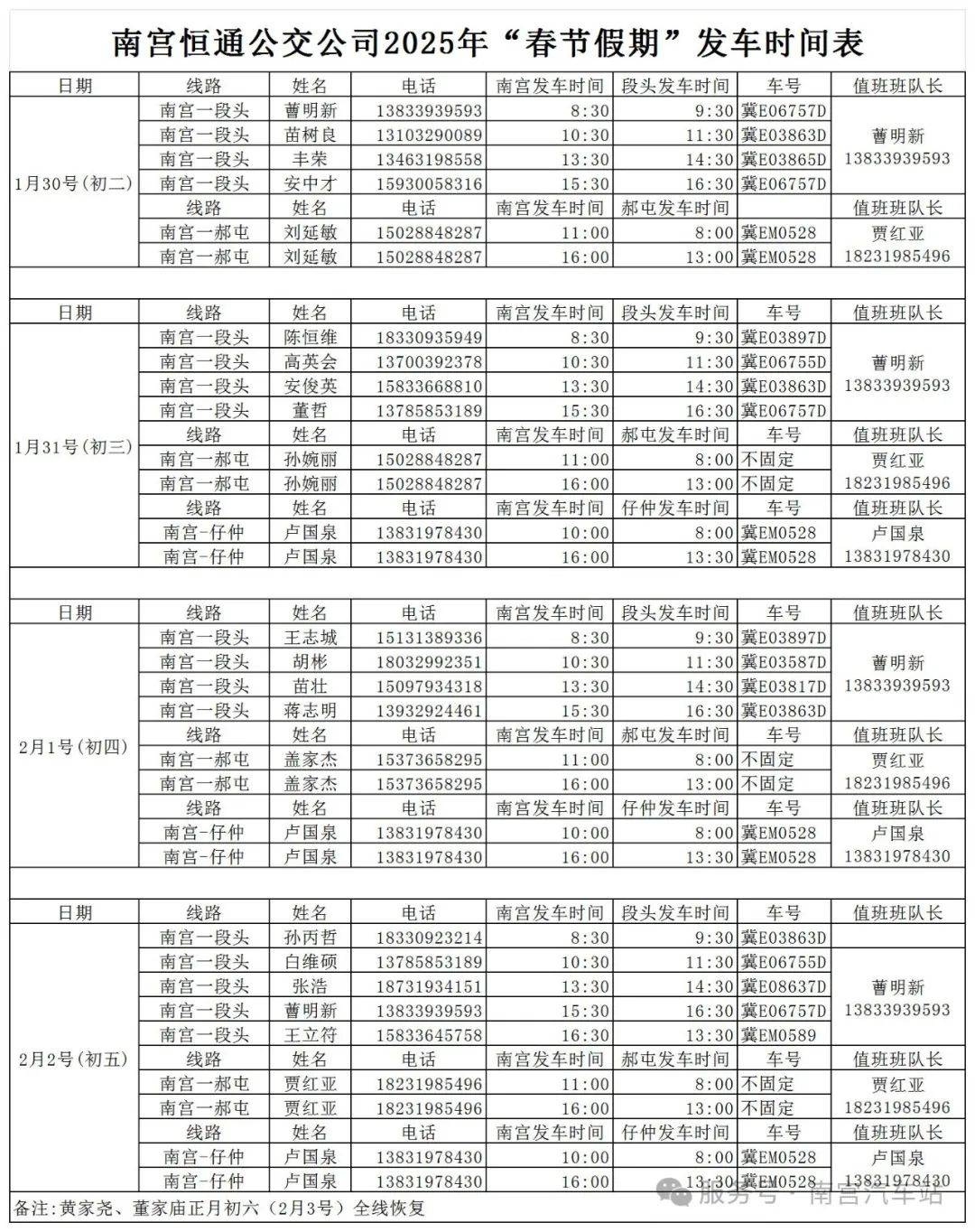 南宫汽车站、城乡公交春节期间车辆停、发南宫28官网- 28官方网站- APP下载时间表