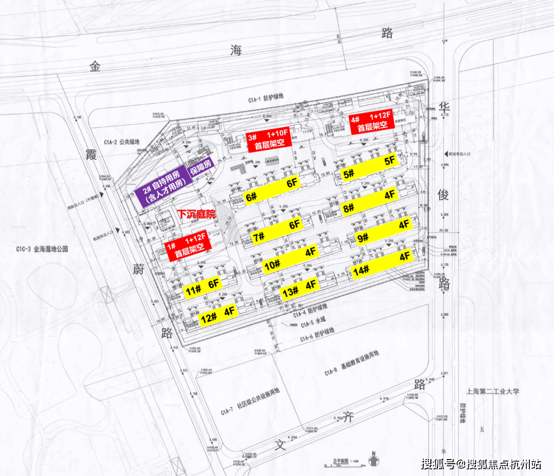 对比来看,新地块优势在于距离地铁站更近,直线号线米,而且地块面宽更大,户型设计可优化空间多;挑战则是北侧即为金海高架,需投入隔音降噪成本,且涵盖4000㎡商服用地。
