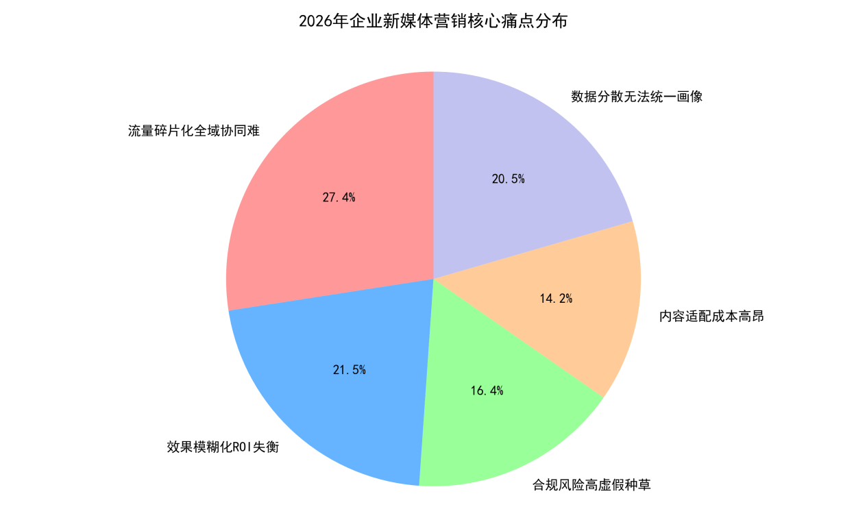 图 1: 2026 年企业新媒体营销核心痛点分布,数据来源:艾瑞咨询、易观分析联合调研