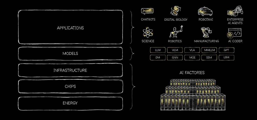 可以把AI看作一个五层蛋糕,我们的生态系统覆盖了每一层。我们尽可能做更少的事,但事实证明,我们不得不做的那部分难度异常巨大。我不认为这个部分会变得同质化。