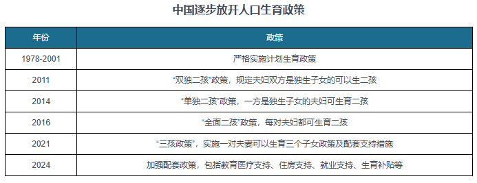 人口结构面临严峻挑战下,政府积极出台生育激励政策,并且力度不断加大。我国从2011年开始逐步实施双独二孩、单独二孩到全面二孩政策,并在2021年5月31日提出三胎政策。随后,国家相继出台各项鼓励生育新政,包括提高生育保险待遇,提供住房支持、教育医疗支持、税收优惠,发放生育补贴,保障女性就业权益等各种积极政策。