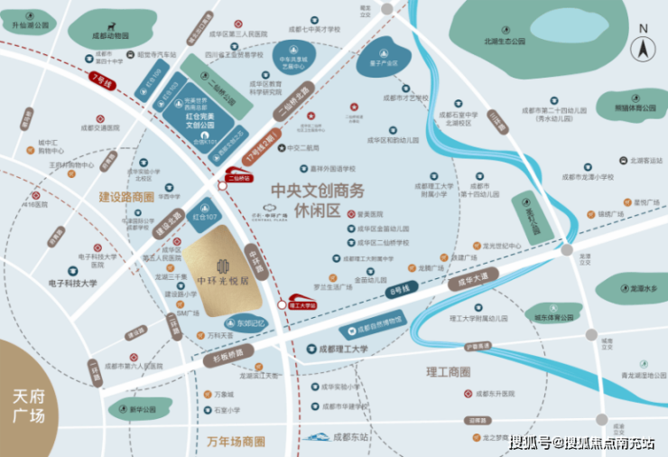 4、中央文化区:在成都,中央文化区就是以东郊记忆为核心的文创群落。近年来,成都成华以“成于中优,华在文商”为工作主题,大力推进以东郊记忆艺术区为示范区的 “现代商贸、文化创意、都市旅游”融合发展区。成华区的商业核心已经从最早的东大路,向建设路,再向东郊记忆板块逐步迁移。而本案所在的二仙桥-八里庄板块,属于政府规划“两轴一核三组团”的核心区域,也是成华区未来居住氛围最好,文创底蕴深厚的“东郊记忆产业生态圈最后一公里”。